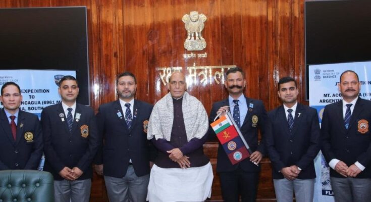 नई दिल्ली। भारतीय पर्वतारोहियों की एक टीम अर्जेंटीना की ऊंची चोटी ‘माउंट एकांकागुआ’ पर चढ़ाई करेगी। रक्षा मंत्री राजनाथ सिंह ने गुरुवार को साउथ ब्लॉक (रक्षा मंत्रालय) से भारतीय पर्वतारोहण टीम को रवाना किया।