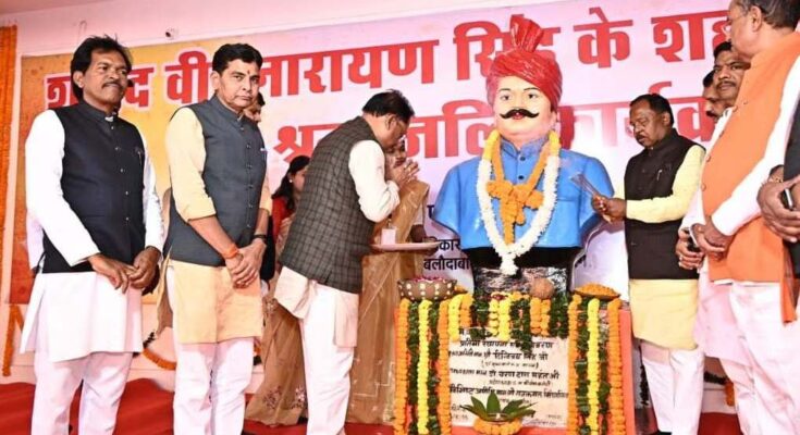 मुख्यमंत्री साय ने कहा कि शहीद वीर नारायण सिंह अंग्रेजी शासन के अत्याचार के विरुद्ध गरीबों, किसानों और वंचित समुदायों के अधिकारों की रक्षा के लिए खड़े हुए एक ऐसे वीर सपूत थे, जिन्होंने भीषण अकाल के समय गरीबों में अनाज बांटकर मानवता की ऐतिहासिक मिसाल पेश की। अंग्रेजी हुकूमत ने 10 दिसंबर 1857 को उन्हें फांसी दे दी, किंतु उनका बलिदान सदियों से संघर्ष, स्वाभिमान और अन्याय के प्रतिकार की प्रेरणा देता आया है। उन्होंने कहा कि हमारी सरकार ने प्रधानमंत्री नरेंद्र मोदी की ‘गारंटी’ के तहत अधिकांश वादों को पूरा किया है और आदिवासी बाहुल्य क्षेत्रों में बुनियादी सुविधाओं के विस्तार के लिए निरंतर काम कर रही है।