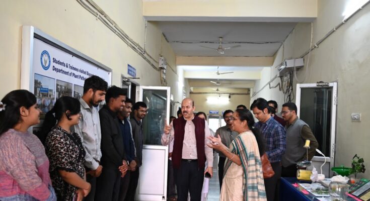 रायपुर, 2 दिसंबर 2025 भारतीय रिजर्व बैंक (आरबीआई), रायपुर के अधिकारियों ने आज इंदिरा गांधी कृषि विश्वविद्यालय परिसर में कृषि महाविद्यालय रायपुर में संचालित अनुसंधान अधोसंरचनाओं एवं प्रक्षेत्र का भ्रमण किया। इस प्रतिनिधिमंडल में भारतीय रिजर्व बैंक, छत्तीसगढ़ की क्षेत्रीय निदेशक रीनी अजित सहित, भारतीय रिजर्व बैंक, रायपुर से अमितेश सिंह (एजीएम, एचआरएमडी), दीपेश तिवारी (एजीएम, एफआईडीडी), नवीन मिंज (एजीएम, डीओएस), जोस सरोज गुड़िया (एजीएम, राजभाषा सेल), सत्येंद्र कुमार राठौड़ (एजीएम, एफआईडीडी), अविनाश कुमार चौधरी (एजीएम, सिविल, एस्टेट सेल) आदि प्रमुख अधिकारी मौजूद थे।
