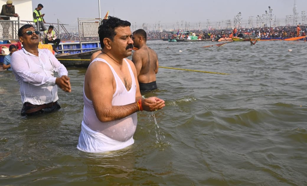 उपमुख्यमंत्री शर्मा ने त्रिवेणी संगम में स्नान और पूजा-अर्चना के बाद कुंभ क्षेत्र में मौजूद श्रद्धालुओं से भेंट कर उनकी कुशलक्षेम पूछी।