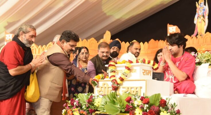 रायपुर, 29 दिसम्बर 2025 जयंती स्टेडियम में आयोजित पांच दिवसीय हनुमंत कथा के चौथे दिवस रविवार को बागेश्वर धाम के पीठाधीश्वर पं. धीरेंद्र शास्त्री की कथा में छत्तीसगढ़ के उप मुख्यमंत्री विजय शर्मा शामिल हुए।