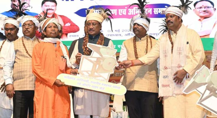 मुख्यमंत्री विष्णु देव साय आज राजधानी रायपुर स्थित पंडित दीनदयाल उपाध्याय आडिटोरियम में छत्तीसगढ़ आदिवासी स्थानीय स्वास्थ्य परंपरा एवं औषधि पादप बोर्ड के नव नियुक्त अध्यक्ष विकास मरकाम के पदभार ग्रहण एवं अभिनंदन समारोह में मुख्य अतिथि के रूप में शामिल हुए। इस अवसर पर उन्होंने मरकाम को नई जिम्मेदारी के लिए बधाई एवं शुभकामनाएं दी।