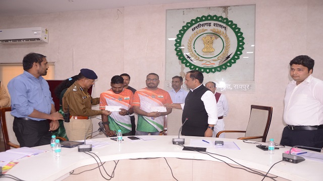 कलेक्टर डाॅ. सिंह ने आर्म रेसलिंग पैरा आर्म रेसनी कप के दिव्यांग विजेताओं को सम्मानित किया और 20-20 हजार रूपए का चेक प्रदान किया। गुढ़ियारी निवासी जी. संदीप कुमार ने आर्म रेसलिंग पैरा आर्म रेसलिंग कप के विजेता रहे है। उन्होंने अंतर्राष्ट्रीय खेल में भारत को तृतीय स्थान में मेडल जीता है। साथ ही डीडी नगर निवासी होरी लाल यादव ने आर्म रेसलिंग पैरा आर्म रेसलिंग कप के प्रतिभागी रहे है। कलेक्टर ने दोनों दिव्यांग खिलाड़ियों को सम्मानित कर शुभकामनाएं दी। इस अवसर पर नगर निगम आयुक्त अबिनाश मिश्रा, जिला पंचायत सीईओ विश्वदीप भी उपस्थित थे।