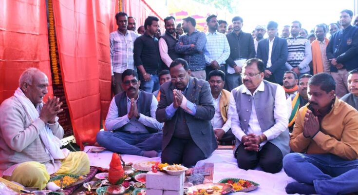 रायपुर । आदिम जाति, अनुसूचित जाति, पिछड़ा वर्ग एवं अल्पसंख्यक विकास एवं कृषि मंत्री रामविचार नेताम ने बलरामपुर विकासखंड अंतर्गत ग्राम पंचायत डौरा के शासकीय पूर्व माध्यमिक विद्यालय के खेल मैदान में 781.59 लाख रु के 31 विभिन्न विकास कार्यों का भूमिपूजन किया। इस अवसर पर पिछड़ा वर्ग आयोग के सदस्य कृष्णा गुप्ता, जनपद पंचायत अध्यक्ष बलरामपुर विनय पैकरा, उपाध्यक्ष भानुप्रकाश दीक्षित, सरपंच बसमतिया तिर्की, अन्य जनप्रतिनिधिगण, सहित बड़ी संख्या में ग्रामीणजन मौजूद रहे। भूमिपूजन में 74.10 लाख के 3 महतारी सदन, 11.69 लाख का 1आंगनबाड़ी केंद्र, 24लाख के 3 छात्रावास अधीक्षक आवास गृह, 60 लाख के 5 अतिरिक्त कक्ष एवं 611.80 लाख के 19 हाट बाजार निर्माण कार्य शामिल है। बलरामपुर प्रवास दौरान ग्राम डौरा कार्यक्रम में पहुंचने पर ग्रामीणों द्वारा कृषि मंत्री नेताम का स्थानीय लोकगीत, ढोल नगाड़े की थाप पर स्वागत किया गया।