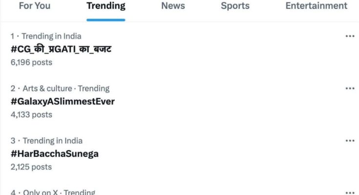 रायपुर, 3 मार्च, 2025/छत्तीसगढ़ का बजट आज एक्स पर ट्रेंड में पहले स्थान पर रहा। पांच बजे तक इस संबंध में 6 हजार 196 पोस्ट किये जा चुके थे। मुख्यमंत्री विष्णु देव साय सरकार ने इस बजट का थीम ज्ञान के लिए गति रखा था। मुख्यमंत्री विष्णु देव साय सरकार के कैबिनेट में वित्त मंत्री ओपी चौधरी ने यह बजट आज विधानसभा में प्रस्तुत किया। पिछले बजट में ज्ञान पर जोर दिया गया था जिसका तात्पर्य यह था कि यह बजट गरीब, युवा, अन्नदाता और नारीशक्ति पर आधारित है। यह प्रधानमंत्री नरेंद्र मोदी द्वारा इन वर्गों पर फोकस कर बनाई जा रही कल्याणकारी नीतियों पर आधारित था। इस बार ज्ञान के लिए गति थीम रखा गया। यहां गति से तात्पर्य था। जी अर्थात गुड गवर्नेंस, ए अर्थात एक्सीलरेटिंग इंफ्रास्ट्रक्चर, टी अर्थात टेक्नालाजी एवं आई अर्थात इंडस्ट्रियल ग्रोथ था। इसी पर आधारित #CG_ की _ प्रGATI_ का _ बजट ने आज एक्स पर ट्रेंड किया। इस बजट में विशेष रूप से डिजिटल टेक्नालाजी पर अत्याधिक जोर होने की वजह से युवाओं को इसने काफी प्रभावित किया। इसी के साथ #CG_बजट टापिक ने भी एक्स पर काफी ट्रेंड किया।