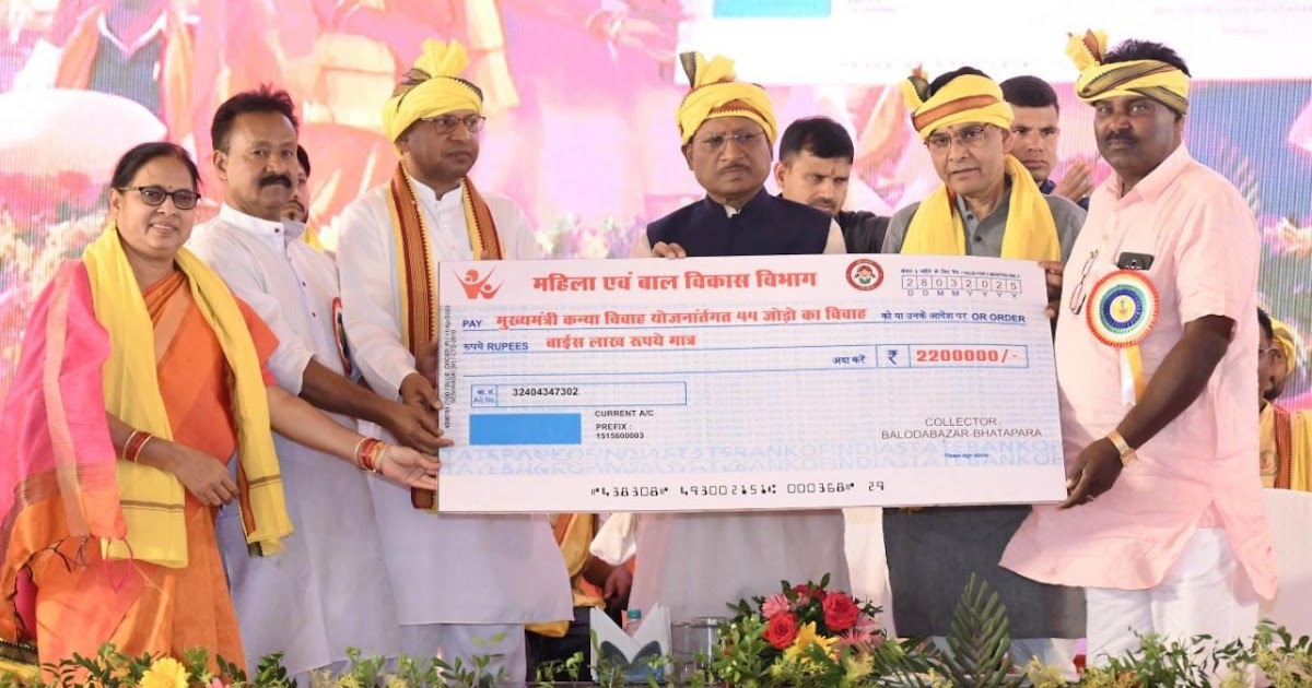 मुख्यमंत्री विष्णु देव साय ने मुख्यमंत्री कन्या विवाह योजना के अंतर्गत नवविवाहित जोड़ों को आर्थिक सहायता राशि का चेक और आवश्यक विवाह सामग्री प्रदान की। उन्होंने प्रत्येक जोड़े को आशीर्वाद देते हुए उनके सुखद एवं समृद्ध दांपत्य जीवन की शुभकामनाएँ दीं। इस अवसर पर उन्होंने कहा कि सरकार का उद्देश्य केवल सहायता देना नहीं, बल्कि सामाजिक जिम्मेदारी में भागीदारी निभाना है। यह योजना आर्थिक रूप से कमजोर परिवारों के लिए एक संबल बनकर उभरी है, जिससे वे गरिमा के साथ अपने परंपरागत रीति-रिवाजों के अनुसार विवाह सम्पन्न कर सकें।