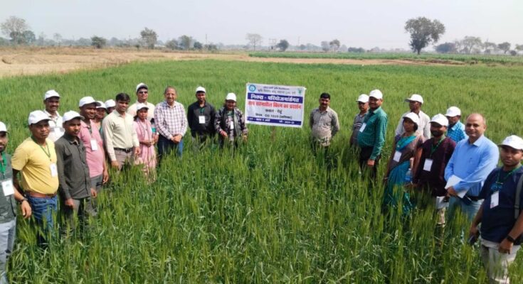 भ्रमण के दौरान कृषक दल ने पाटन विकासखंड के ग्राम करगा का दौरा कर बिना जुताई (जीरो टिलेज) पद्धति से गेहूं उत्पादन एवं अधिक तापमान सहनशील उन्नत किस्म ‘कनिष्का’ के प्रदर्शन का अवलोकन किया। साथ ही असिंचित क्षेत्रों में धान कटाई उपरांत खेत की नमी का उपयोग करते हुए उतेरा पद्धति से तिवड़ा की खेती तथा मेड़ पर कम अवधि वाली ‘राजेश्वरी फूले’ अरहर की खेती की तकनीक का निरीक्षण किया। स्थानीय प्रगतिशील कृषकों से संवाद कर दल ने कम लागत में अधिक उत्पादन एवं बेहतर लाभ की संभावनाओं पर विस्तार से जानकारी प्राप्त की।