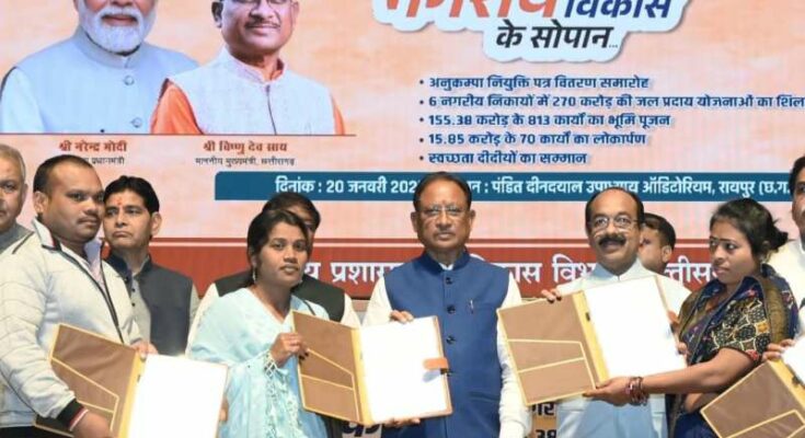 मुख्यमंत्री ने कहा कि देश के मुखिया प्रधानमंत्री से लेकर गांव के सरपंच तक विकास की सोच रखने वाले जनप्रतिनिधि होंगे तो सबका साथ, सबका विकास मूलमंत्र के साथ छत्तीसगढ़ का सर्वांगीण विकास होकर ही रहेगा। उन्होंने कहा कि गांव और नगरीय क्षेत्र का समन्वित विकास होना चाहिए, इसके लिए मानव संसाधन की पर्याप्त उपलब्धता आवश्यक है। नगरीय निकायों में अनुकम्पा नियुक्ति के संबंध में लम्बे समय से मांग की जा रही थी। हमने संवेदनशीलता के साथ विचार कर इसके लिए नए पद भी स्वीकृत किए हैं। नगरीय विकास के सोपान कार्यक्रम में हम लोग आज 103 पदों पर अनुकंपा नियुक्ति का आदेश पत्र अभी वितरण किए हैं। हमारा प्रयास है कि प्रदेश में रोजगार के अवसर बढ़े और ज्यादा से ज्यादा युवा आत्मनिर्भर हों। हमारी सरकार ने नगरीय प्रशासन एवं विकास विभाग और विभिन्न नगरीय निकायों में अनुकम्पा नियुक्ति के लिए 353 पदों की स्वीकृति प्रदान की है।