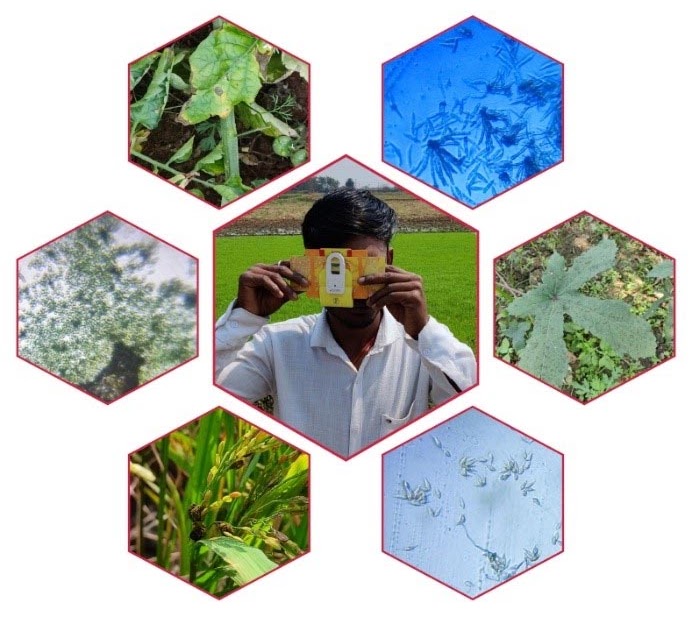 फोल्डस्कोप एक किफायती और पोर्टेबल माइक्रोस्कोप है, जिसे स्टैनफोर्ड यूनिवर्सिटी के भारतीय-अमेरिकी वैज्ञानिक प्रोफेसर मनु प्रकाश और उनकी टीम ने विकसित किया है। इसे 2014 में लॉन्च किया गया था और तब से इसका उपयोग शिक्षा, शोध और निदान के लिए किया जा रहा है। यह उपकरण खेती और वैज्ञानिक अनुसंधान के क्षेत्र में बेहद उपयोगी और किफायती है। फोल्डस्कोप का उपयोग किसान कीट और रोग का पता लगाने, मिट्टी की गुणवत्ता की जांच और पानी के विश्लेषण के लिए कर रहे हैं। इसकी मदद से फसलों में पाउडरी फफूंदी, पत्ती झुलसा, पत्ती धब्बा और कटाई के बाद होने वाली बीमारियों की पहचान की जा रही है। अब तक, फोल्डस्कोप की मदद से 16 प्रकार के फफूंद रोगों और उनके कारक जीवों की पहचान हो चुकी है। उदाहरण के लिए, गोलोविनोमाइसेस सिचोर-एसेरम और एरीसिफे पॉलीगोनी जैसे रोगजनकों का पता लगाया गया है। फोल्डस्कोप केवल खेती तक सीमित नहीं है, बल्कि इसे पशुपालन में भी इस्तेमाल किया जा रहा है। मवेशियों के कृत्रिम गर्भाधान के लिए वीर्य की गुणवत्ता का आकलन करने में इसका प्रयोग किया गया है। इससे गर्भधारण दर में सुधार हुआ है और देशी मवेशियों की नस्लों की ग्रेडिंग बेहतर हो रही है।