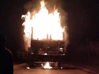 ट्रक में लगी आग, 100 बोरी धान जलकर खाक