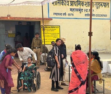 रायपुर। छत्तीसगढ़ राज्य के 173 नगरीय निकायों के लिए आज एक चरण में मतदान हो रहा है। लोकतंत्र के महापर्व में हर नागरिक की भागीदारी अहम होती है। महासमुंद के वार्ड क्रमांक 27 की दिव्यांग मतदाता उषा बाई कन्नौजे ने मतदान कर समाज को जागरूकता का संदेश दिया।