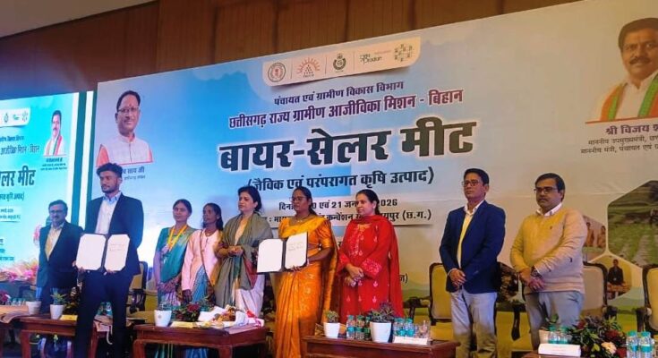 रायपुर, 22 जनवरी 2026 नवा रायपुर के एक निजी होटल में आयोजित दो दिवसीय बायर-सेलर मीट 2026 में राज्य के बिहान महिला समूहों और इनके एफपीओ को जर्बदस्त रिस्पॉन्स मिला है, इससे महिला समूहों का मनोबल बढ़ा है। पंचायत एवं ग्रामीण विकास विभाग द्वारा आयोजित यह बायर-सेलर मीट 20 एवं 21 जनवरी को नया रायपुर स्थित निजी होटल में आयोजित हुई। इस दौरान खरीददार और महिला समूहों के प्रतिनिधियों के बीच उनके उत्पादों की मात्रा, क्वालिटी और मार्केेटिंग को लेकर कई सहमतियां भी बनी।