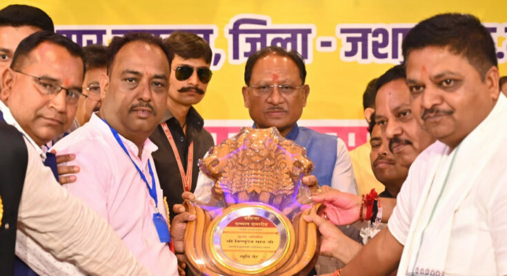रायपुर: मुख्यमंत्री श्री विष्णुदेव साय आज जशपुर विकासखंड के श्याम पैलेस में आयोजित राष्ट्रीय कन्नौजिया सोनार महापरिवार जशपुर मंडल के प्रतिभा सम्मान समारोह में शामिल हुए। उन्होंने समाज को सामाजिक भवन के निर्माण के लिए 25 लाख रुपये की वित्तीय सहायता देने की घोषणा की। इस अवसर पर उन्होंने कक्षा 10वीं और 12वीं में उत्कृष्ट अंक प्राप्त करने वाले, आईआईटी और मेडिकल प्रवेश परीक्षा में सफलता पाने वाले होनहार छात्रों को प्रतीक चिन्ह और प्रशस्ति पत्र देकर सम्मानित किया।