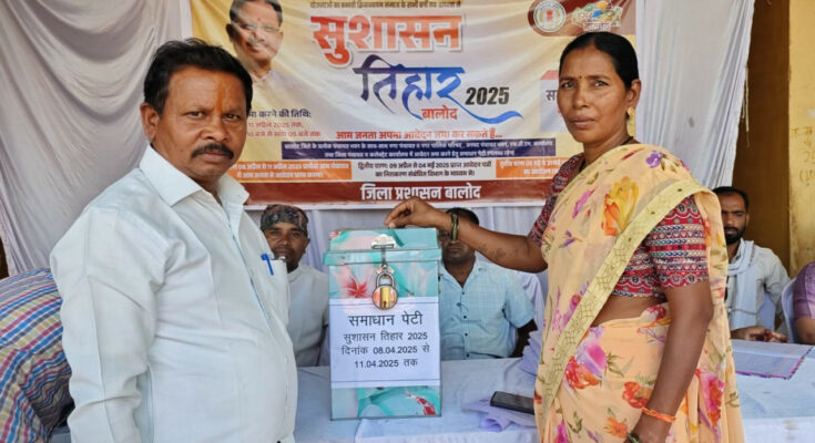 सुशासन तिहार को लेकर लोगों में जबरदस्त उत्साह देखने को मिल रहा है, और लोग अपनी समस्याओं से संबंधित आवेदन लेकर उसे ग्राम पंचायत और नगर पंचायत कार्यालयों में लगी समाधान पेटी में जमा कर रहे है। जनसमान्य की समस्याओं से संबंधित आवेदनों को भरने के लिए ग्राम पंचायतों एवं नगरीय निकायो के कार्यालयों में अधिकारी कर्मचारी की ड्यूटी भी लगाई गई है, ताकि लोगों को अपनी समस्याओं से संबंधित आवेदन देने में किसी भी तरह की परेशानी न हो।