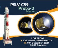 इसरो ने कहा कि पीएसएलवी-सी59/प्रोबा-3 मिशन उपग्रहों का प्रक्षेपण चार दिसंबर को शाम 4:06 बजे आंध्र प्रदेश के श्रीहरिकोटा स्थित सतीश धवन अंतरिक्ष केंद्र से होगा। इस मिशन में ध्रुवीय उपग्रह प्रक्षेपण यान (पीएसएलवी)-सी59 लगभग 550 किलोग्राम वजन वाले उपग्रहों को अत्यधिक दीर्घवृत्ताकार कक्षा में ले जाएगा। प्रोबा-3 मिशन यूरोपीय अंतरिक्ष एजेंसी (ईएसए) द्वारा एक “इन-ऑर्बिट डेमोस्ट्रेशन (आईओडी) मिशन” है। ईएसए ने कहा कि ‘प्रोबा-3’ सूर्य के परिमंडल की सबसे बाहरी और सबसे गर्म परत का अध्ययन करेगा।