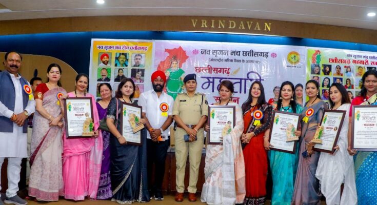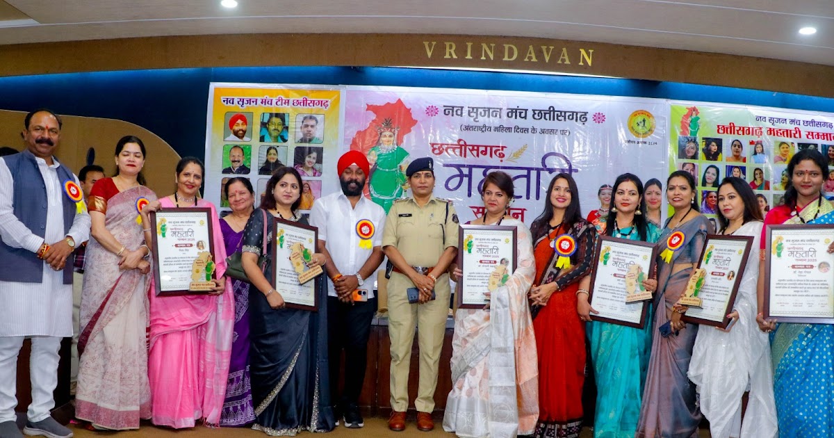 रायपुर। प्रदेश की सामाजिक संस्था नवसृजन मंच द्वारा अंतर्राष्ट्रीय महिला दिवस के अवसर पर विभिन्न क्षेत्रों में कार्य करने वाली 61 महिलाओं को गुरूवार को महतारी सम्मान से सम्मानित किया गया। साथ ही 12 ऐसे स्वसहायता समूह जो अपने महिला समूह के माध्यम से निरंतर कार्य करती आ रही जिनका योगदान उत्कृष्ट माना गया, उन्हें भी महतारी गौरव सम्मान देकर सम्मानित किया गया। कार्यक्रम का शुभारंभ छत्तीसगढ़ महतारी के चित्र पर माल्यार्पण कर, द्वीप जलाकर और राजगीत अरपा पैरी के धार गीत के साथ हुआ।