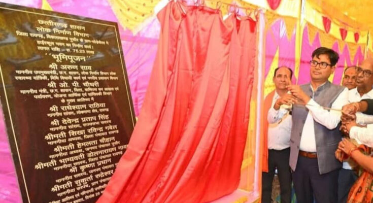 वित्त मंत्री ओ.पी. चौधरी ने पुसौर विकासखंड में 1.50 करोड़ की लागत से बनने वाले दो हाई स्कूल भवनों का भूमिपूजन किया। ये स्कूल ग्राम गढ़उमरिया और सोड़ेकेला में बनाए जाएंगे। इस अवसर पर वित्त मंत्री ओ.पी.चौधरी ने कहा कि यह बहुत खुशी की बात है कि अब यहां हाईस्कूल भवन का निर्माण कार्य शुरू हो जाएगा। यह स्कूल भवन क्षेत्र के बच्चों के अनगिनत सपनों की बुनियाद बनेगा। उन्होंने लोक निर्माण विभाग के अधिकारियों के साथ ठेकेदारों को निर्देशित किया कि निर्माण कार्य अच्छी गुणवत्ता के साथ तय समय-सीमा में पूरा कर लिया जाए। उन्होंने कहा कि यह निर्माण बच्चों से जुड़ा है। इसमें गुणवत्ता बहुत अच्छी होनी चाहिए। इस दौरान चौधरी ने कहा कि मुख्यमंत्री विष्णुदेव साय के नेतृत्व में प्रदेश में विकासमूलक कार्यों के विस्तार के लिए लगातार कार्य कर रहे हैं। किसानों से प्रति एकड़ 21 क्विंटल 31 सौ रूपये की दर से किया गया। अंतर की राशि भी एक मुश्त जारी की गई। पिछले सवा साल में 1 लाख करोड़ रुपए किसान भाईयों को विभिन्न योजनाओं के माध्यम से दिया गया है। दो साल के बकाए बोनस का भुगतान 3 हजार सात सौ करोड़ रुपए किया गया। महतारी वंदन योजना से 70 लाख महिलाओं को 1 हजार रुपए की सहायता राशि दी जा रही है। पहली कैबिनेट में प्रदेश में 18 लाख आवास निर्माण की स्वीकृति प्रदान की गई। आवास निर्माण के लिए राशि जारी होने के बाद अब लोग अपने मकान के निर्माण पूरा कर रहे हैं, उनके पक्के घर का सपना पूरा हो रहा है। साथ ही भूमिहीन मजदूरों की चिंता करते हुए दीनदयाल उपाध्याय भूमिहीन कृषि मजदूर कल्याण योजना का शुभारंभ भी किया है। वित्त मंत्री चौधरी ने कहा कि प्रदेश विकास कार्यों को नयी ऊंचाई देने के लिए पूरे समर्पण के साथ कार्य करने के लिए हम संकल्पित हैं।