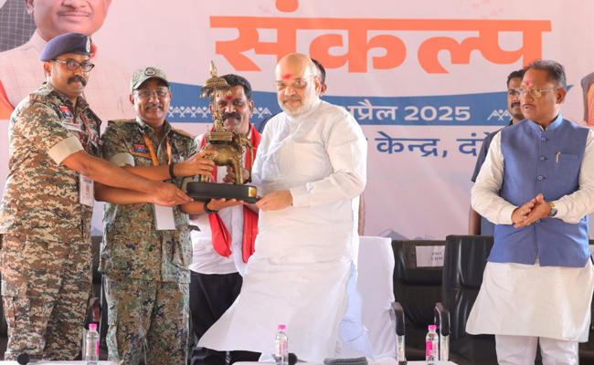 रायपुर। केंद्रीय गृहमंत्री श्री अमित शाह ने दंतेवाड़ा में सुरक्षा बल के जवानों से मुलाकात कर उनका उत्साहवर्धन करते हुए कहा कि बस्तर अब लाल आतंक से बाहर निकलकर उन्नति की ओर अग्रसर है। यह बदलाव हमारे वीर जवानों की बहादुरी और सतत प्रयासों का परिणाम है।डीआरजी, कोबरा बटालियन, छत्तीसगढ़ पुलिस और पैरा मिलिटरी फोर्सेस की इसमें उल्लेखनीय भूमिका रही है। उन्होंने कहा कि अंदरूनी क्षेत्रों में सुरक्षा कैम्पों की स्थापना से अनेक गाँव नक्सल मुक्त हो रहे हैं।