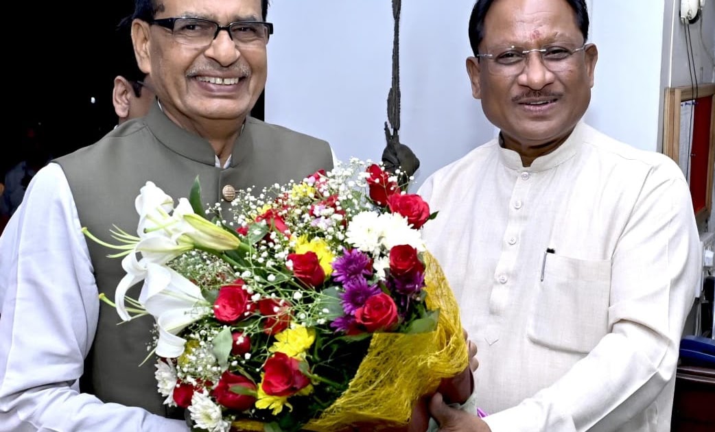 रायपुर 13 मई 2025/ मुख्यमंत्री विष्णुदेव साय से छत्तीसगढ़ प्रवास पर आए केंद्रीय ग्रामीण विकास एवं कृषि व किसान कल्याण मंत्री शिवराज सिंह चौहान ने सौजन्य मुलाकात की। मुख्यमंत्री साय ने चौहान का छत्तीसगढ़ में स्वागत करते हुए उन्हें बस्तर आर्ट का प्रतीक चिन्ह व शॉल भेंट किया। मुख्यमंत्री साय ने छत्तीसगढ़ की पावन धरा पर केंद्रीय मंत्री शिवराज सिंह चौहान का हार्दिक स्वागत एवं अभिनंदन करते हुए कहा कि  गरीब, किसान एवं गांव के कल्याण के लिए आपका समर्पण हम सबके लिए प्रेरणादायी है। आपके अनुभव और मार्गदर्शन से डबल इंजन सरकार का संकल्प और सशक्त होगा।