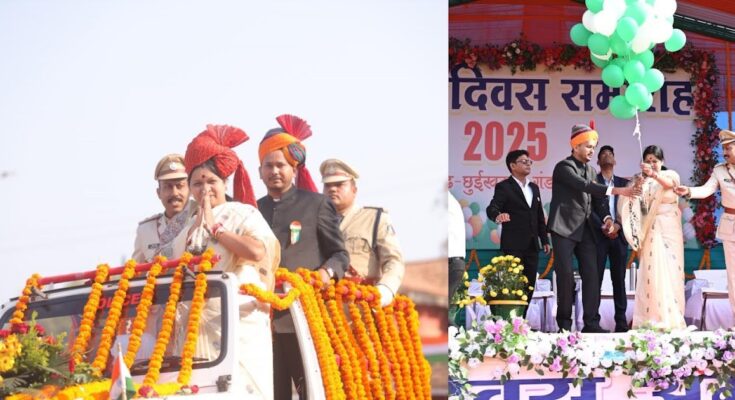 रायपुर। खैरागढ़-छुईखदान-गंडई जिला मुख्यालय खैरागढ़ के  राजा फतेह सिंह खेल मैदान में आयोजित गणतंत्र दिवस मुख्य समारोह में मुख्य अतिथि सांसद कमलेश जांगड़े ने राष्ट्रीय ध्वज फहराया और तिरंगे को सलामी दी। इस मौके पर सांसद जांगड़े ने कलेक्टर चन्द्रकांत वर्मा और पुलिस अधीक्षक त्रिलोक बंसल के साथ परेड का निरीक्षण किया। उन्होंने मुख्यमंत्री विष्णुदेव साय का प्रदेश की जनता के नाम संदेश का वाचन किया। शांति और हर्ष के प्रतीक सफेद कबूतर एवं तिरंगे उड़ाए गए। इस अवसर पर सांसद कमलेश जांगड़े ने स्वतंत्रता संग्राम सेनानी और नक्सल हिंसा में शहीद हुए जवानों के परिजनों को शॉल और श्रीफल भेंटकर सम्मानित किया।