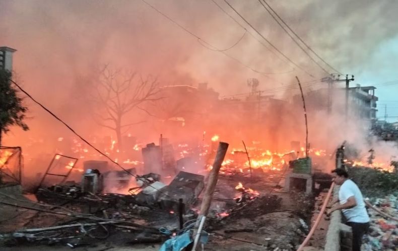 - सबसे ज्यादा खौफनाक मंजर तब पैदा हुआ जब झोपड़ियों में रखे गैस सिलेंडर आग की तेज लपटों के बीच एक के बाद एक फटने लगे।