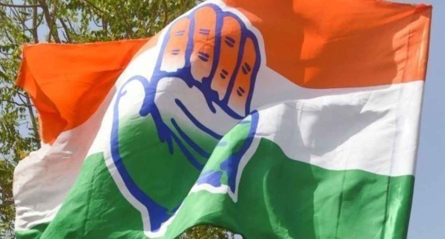कांग्रेस भवन, पार्टी के झंडे और नेताओं की बैठक का प्रतीकात्मक चित्र