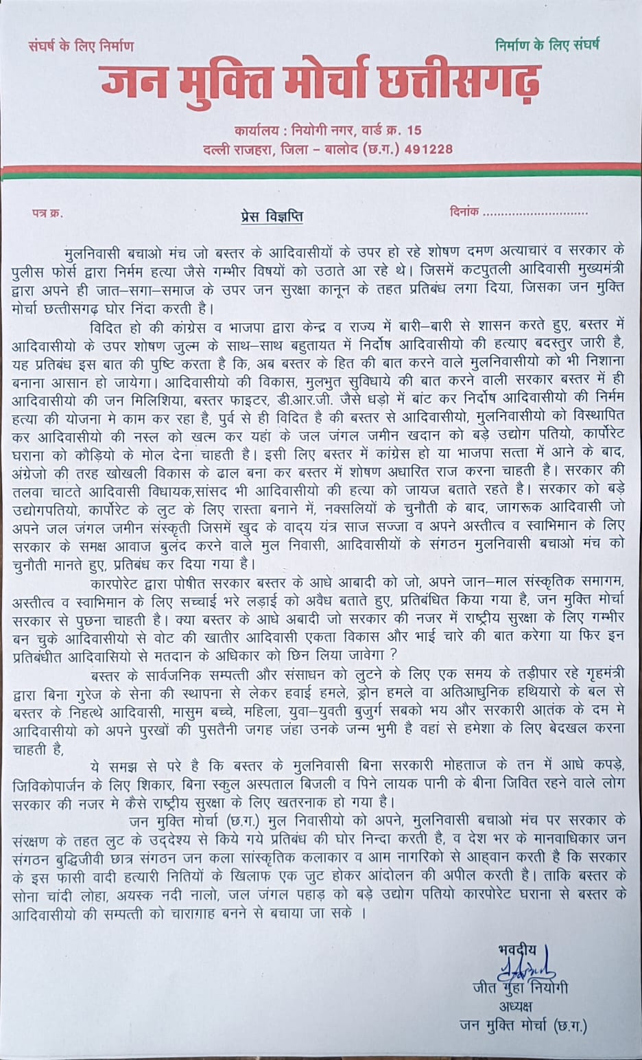 मूल निवासी मंच पर प्रतिबंध सर्वथा निंदनीय : जीत गुहा नियोगी Read More